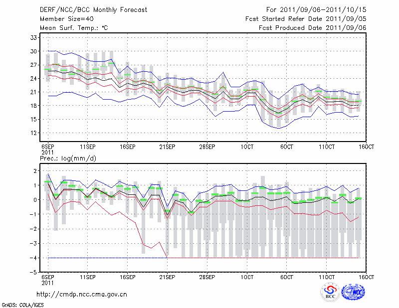 钟 祥 (LAT:31.17 LON:112.57) 2011-09-06        预测