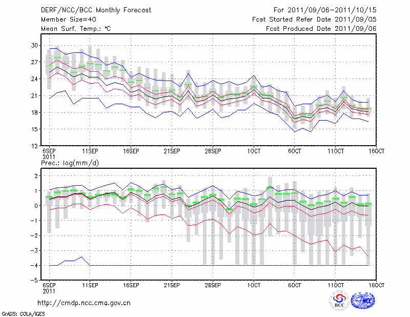 恩 施 (LAT:30.28 LON:109.47) 2011-09-06        预测