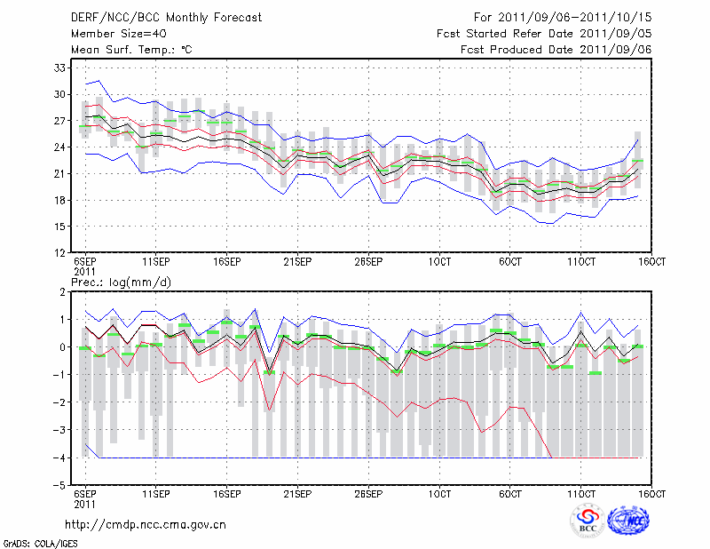 安 庆 (LAT:30.53 LON:117.05) 2011-09-06        预测