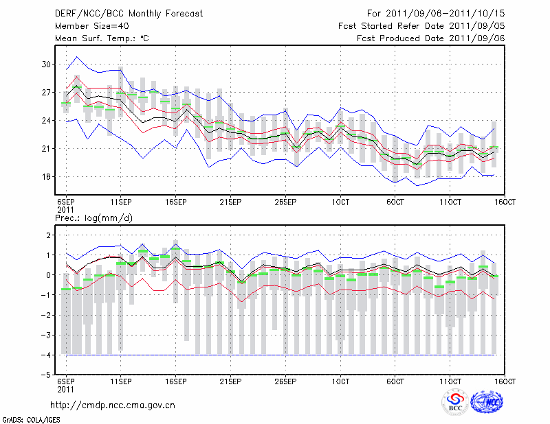 杭 州 (LAT:30.23 LON:120.17) 2011-09-06        预测