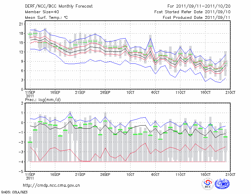 乌兰浩特 (LAT:46.08 LON:122.05) 2011-09-11        预测