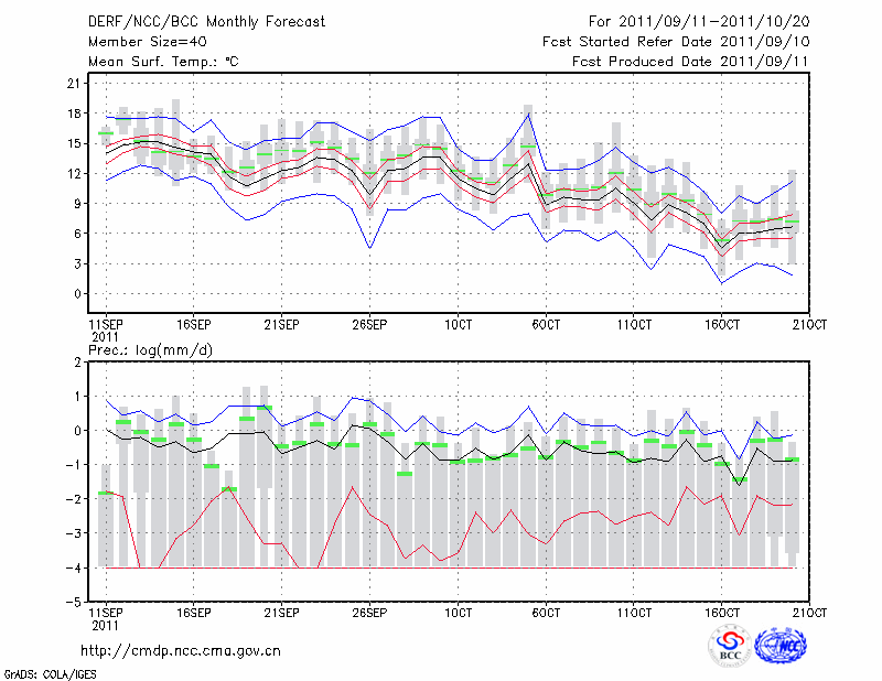 哈 尔 滨 (LAT:45.75 LON:126.77) 2011-09-11        预测