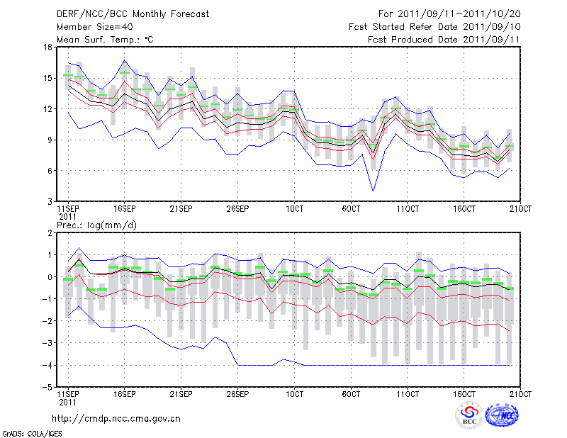 西 宁 (LAT:36.62 LON:101.77) 2011-09-11        预测