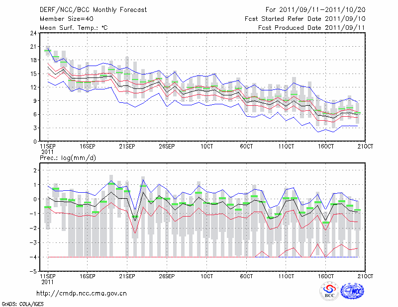 延 吉 (LAT:42.88 LON:129.47) 2011-09-11        预测