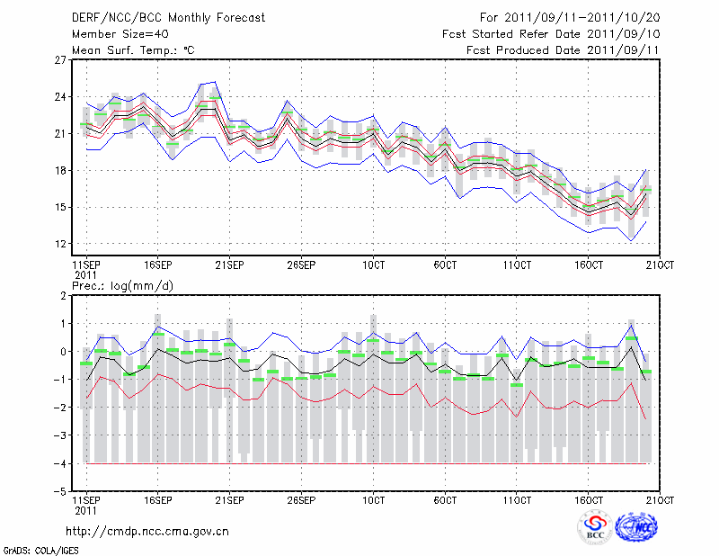 潍 坊 (LAT:36.70 LON:119.08) 2011-09-11        预测
