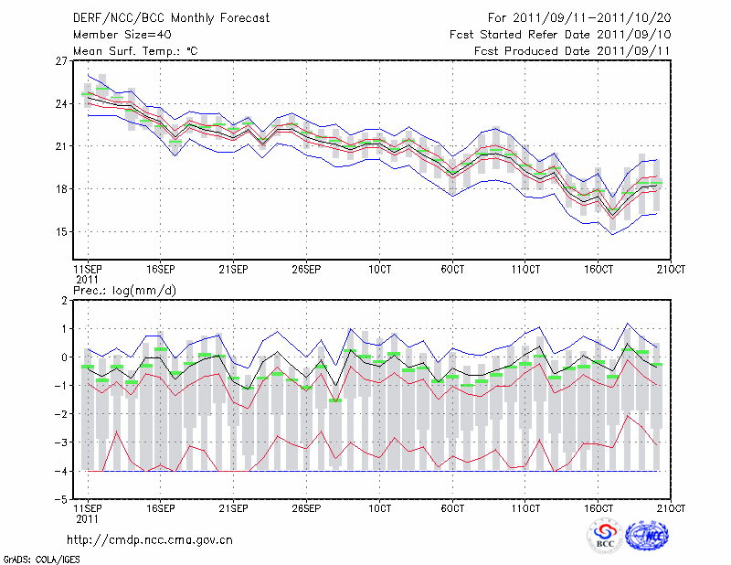 青 岛 (LAT:36.07 LON:120.33) 2011-09-11        预测