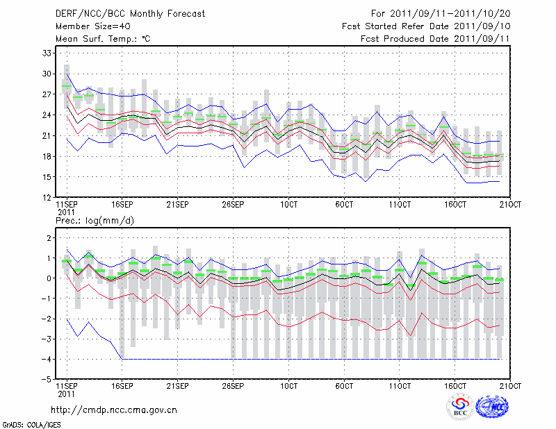岳 阳 (LAT:29.38 LON:113.08) 2011-09-11        预测