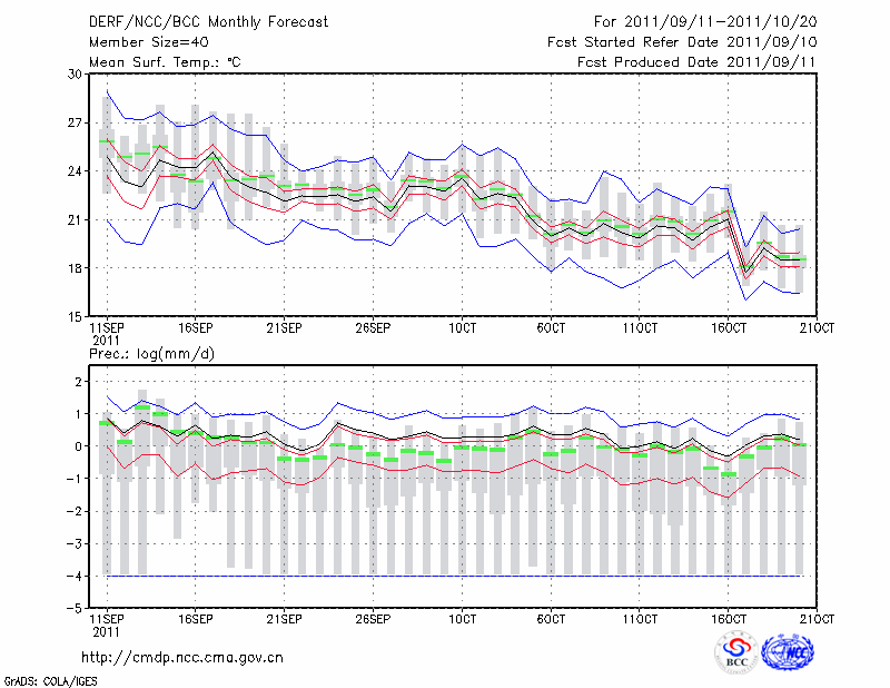 杭 州 (LAT:30.23 LON:120.17) 2011-09-11        预测