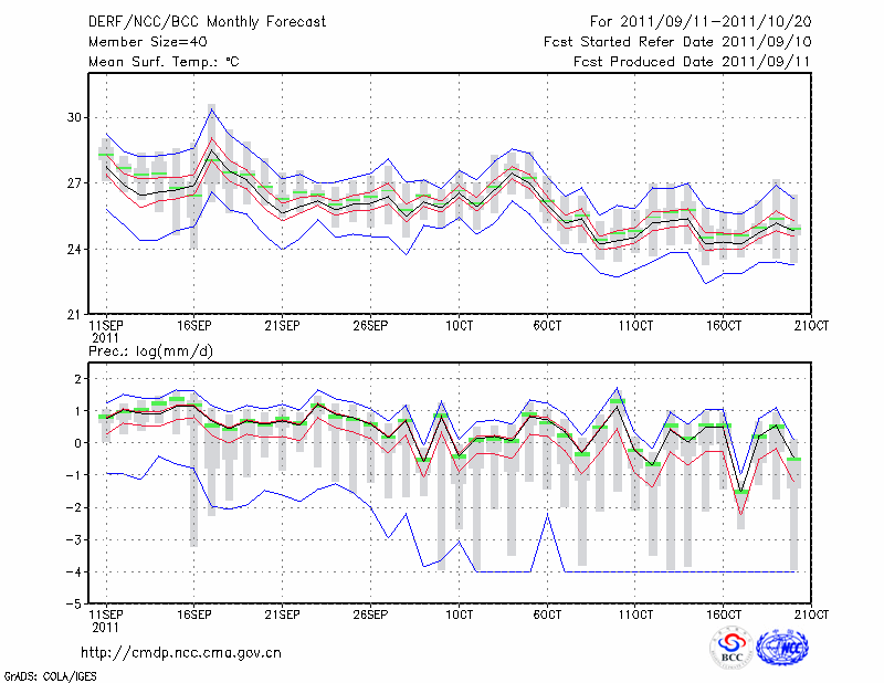 福 州 (LAT:26.08 LON:119.28) 2011-09-11        预测