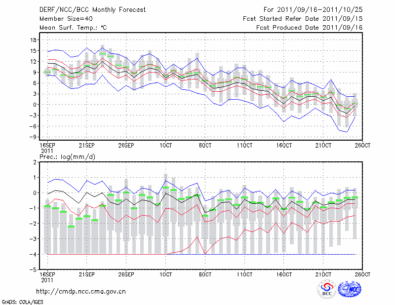 嫩 江 (LAT:49.17 LON:125.23) 2011-09-16        预测
