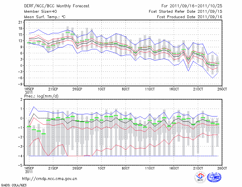 鸡 西 (LAT:45.28 LON:130.95) 2011-09-16        预测