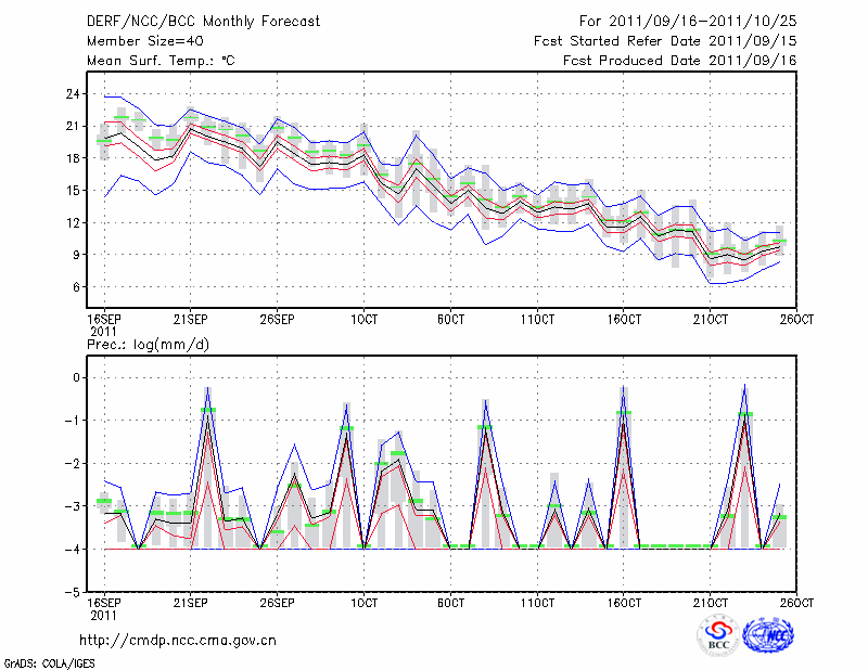若 羌 (LAT:39.03 LON:88.17) 2011-09-16        预测