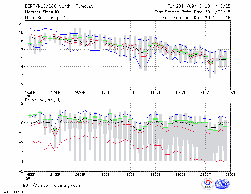 延 安 (LAT:36.60 LON:109.50) 2011-09-16        预测
