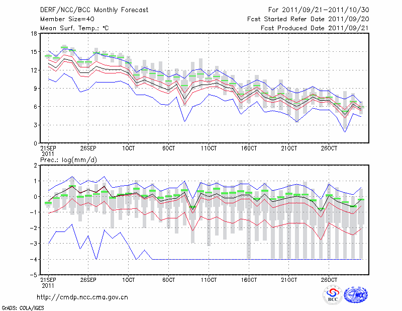 临 夏 (LAT:35.58 LON:103.18) 2011-09-21        预测