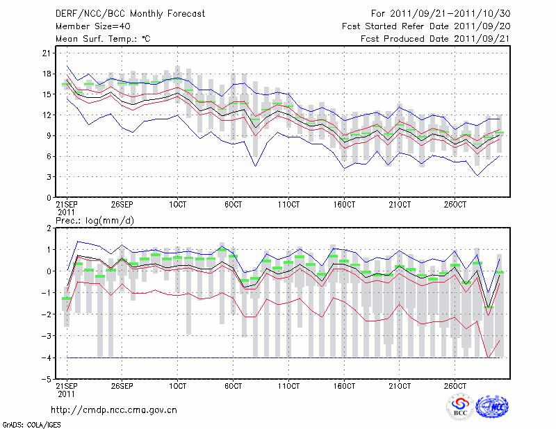 西 峰 镇 (LAT:35.73 LON:107.63) 2011-09-21        预测