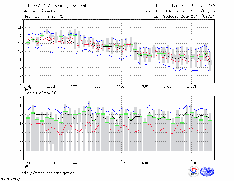 丹 东 (LAT:40.05 LON:124.33) 2011-09-21        预测