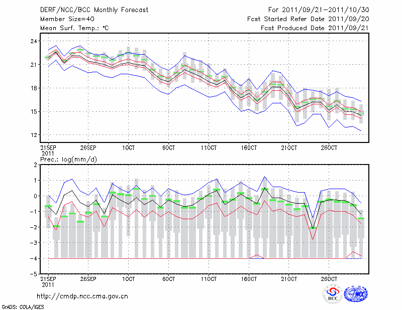 青 岛 (LAT:36.07 LON:120.33) 2011-09-21        预测
