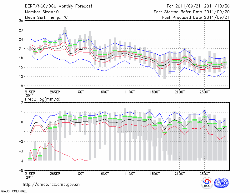 钟 祥 (LAT:31.17 LON:112.57) 2011-09-21        预测