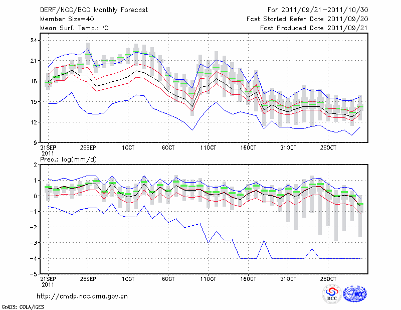 毕 节 (LAT:27.30 LON:105.23) 2011-09-21        预测
