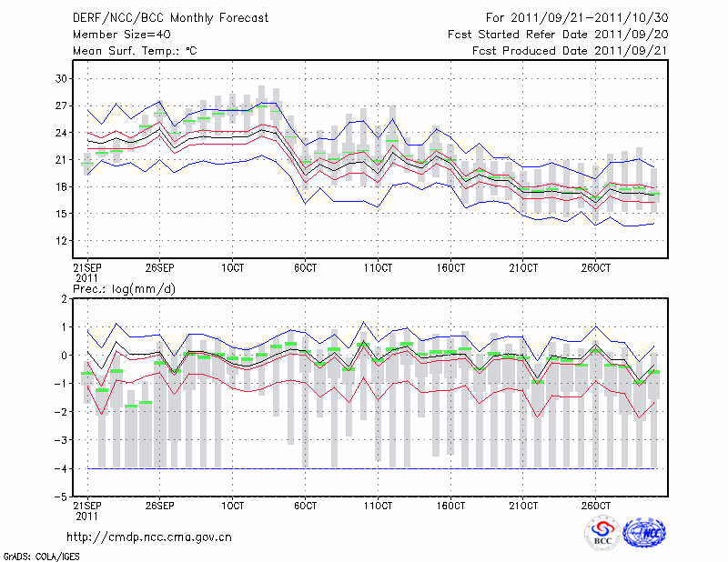 南 昌 (LAT:28.60 LON:115.92) 2011-09-21        预测
