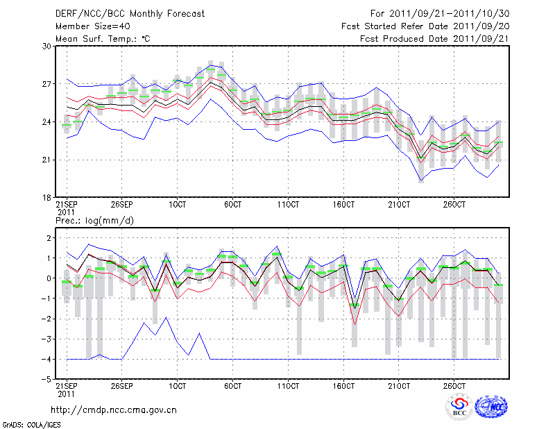 福 州 (LAT:26.08 LON:119.28) 2011-09-21        预测