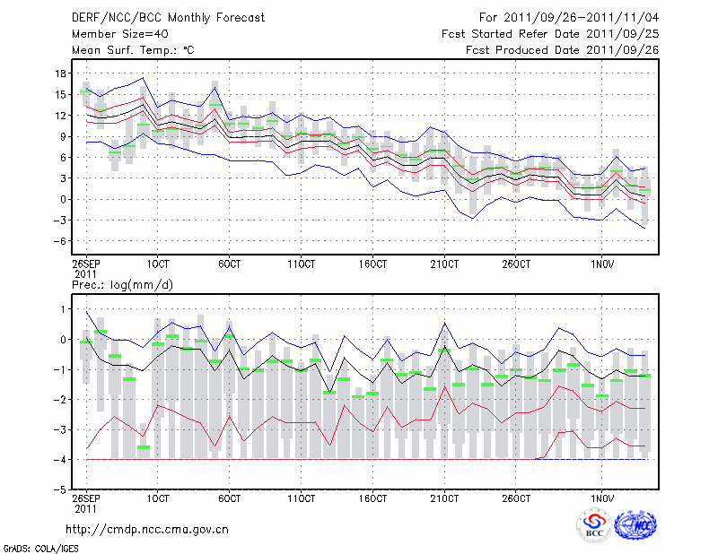乌兰浩特 (LAT:46.08 LON:122.05) 2011-09-26        预测