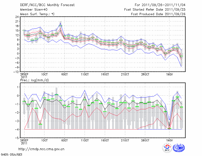 林 东 (LAT:43.98 LON:119.40) 2011-09-26        预测
