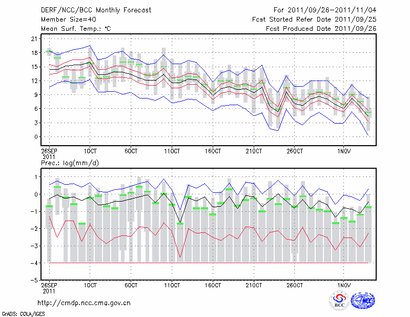 沈 阳 (LAT:41.77 LON:123.43) 2011-09-26        预测