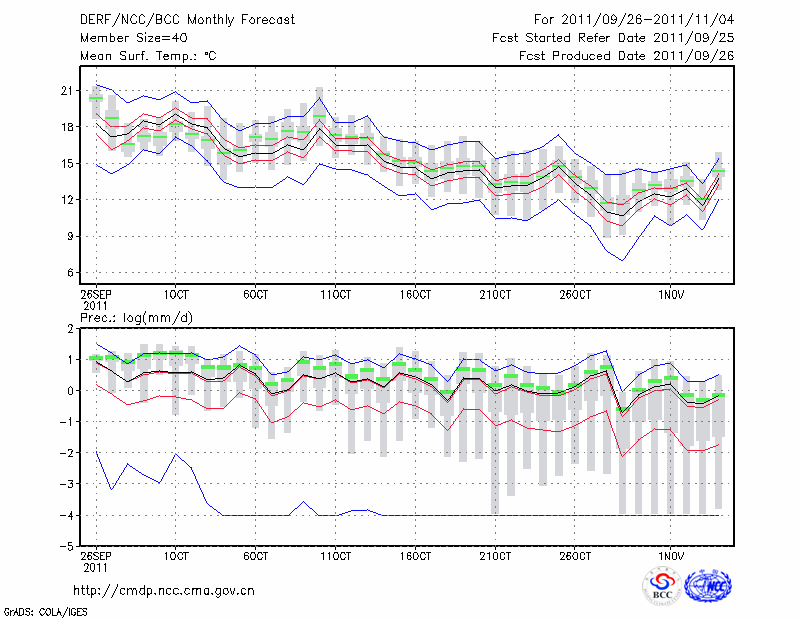 汉 中 (LAT:33.07 LON:107.03) 2011-09-26        预测