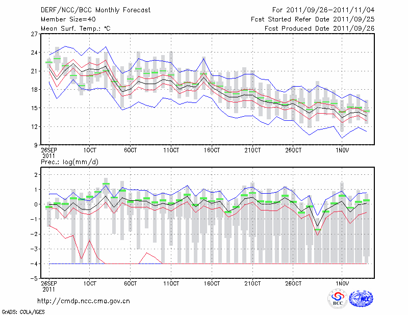 汉 口 (LAT:30.62 LON:114.13) 2011-09-26        预测
