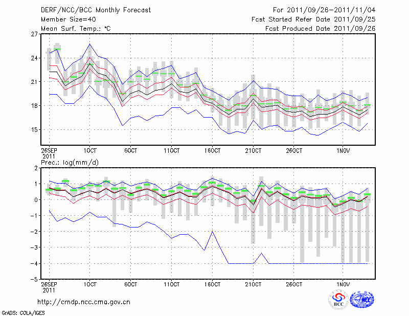 内 江 (LAT:29.58 LON:105.05) 2011-09-26        预测