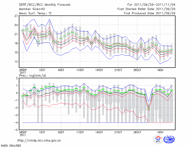 常 德 (LAT:29.05 LON:111.68) 2011-09-26        预测