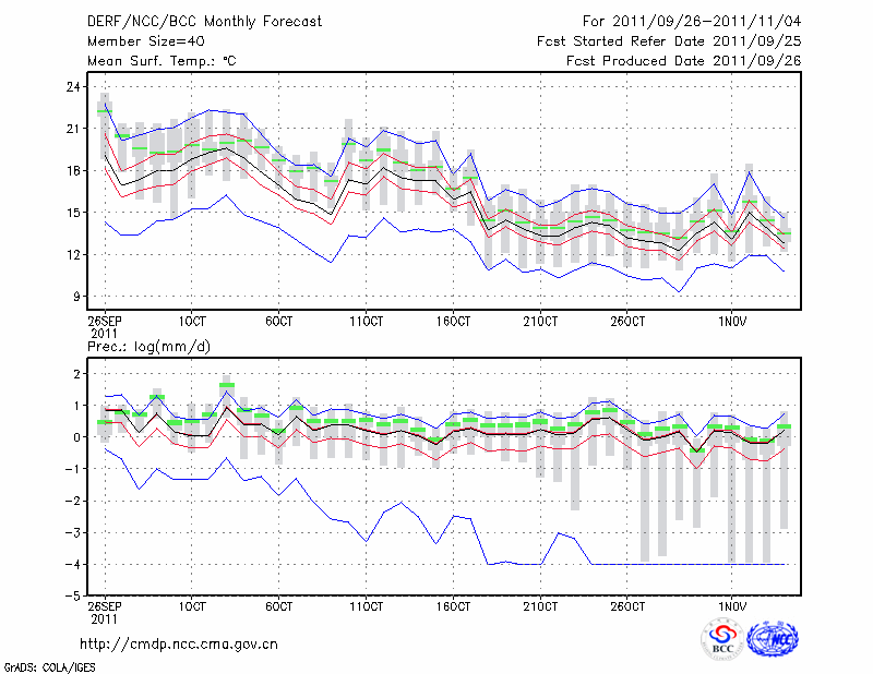 毕 节 (LAT:27.30 LON:105.23) 2011-09-26        预测