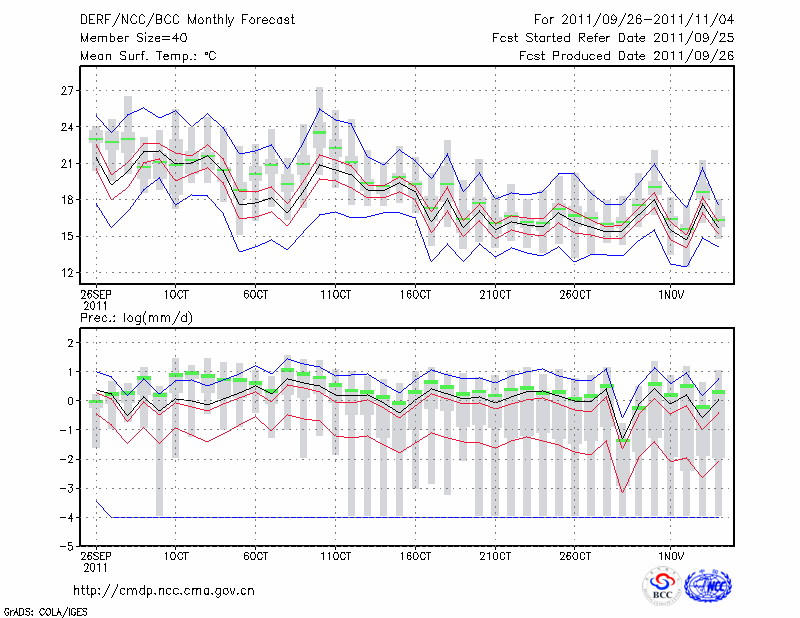 芷 江 (LAT:27.45 LON:109.68) 2011-09-26        预测