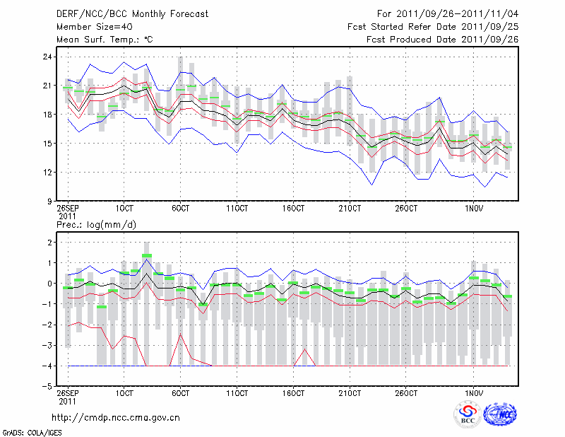蚌 埠 (LAT:32.95 LON:117.37) 2011-09-26        预测