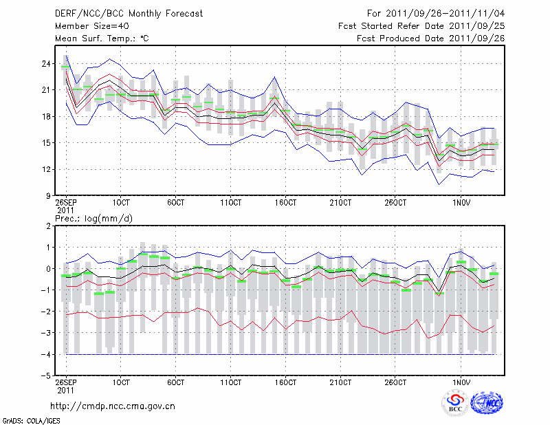 南 京 (LAT:32.00 LON:118.80) 2011-09-26        预测