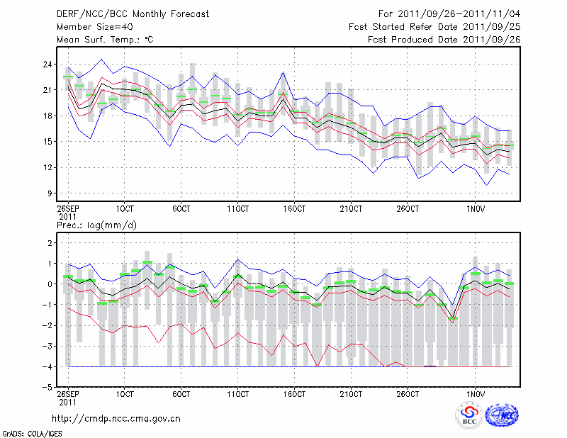 合 肥 (LAT:31.87 LON:117.23) 2011-09-26        预测