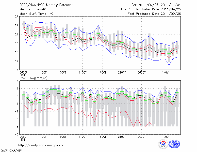 安 庆 (LAT:30.53 LON:117.05) 2011-09-26        预测
