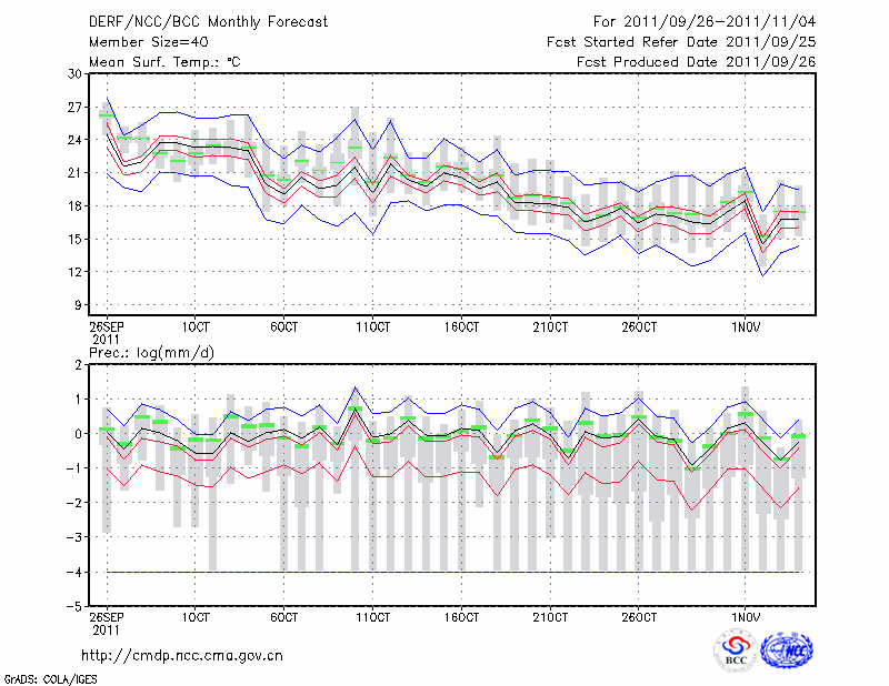 南 昌 (LAT:28.60 LON:115.92) 2011-09-26        预测