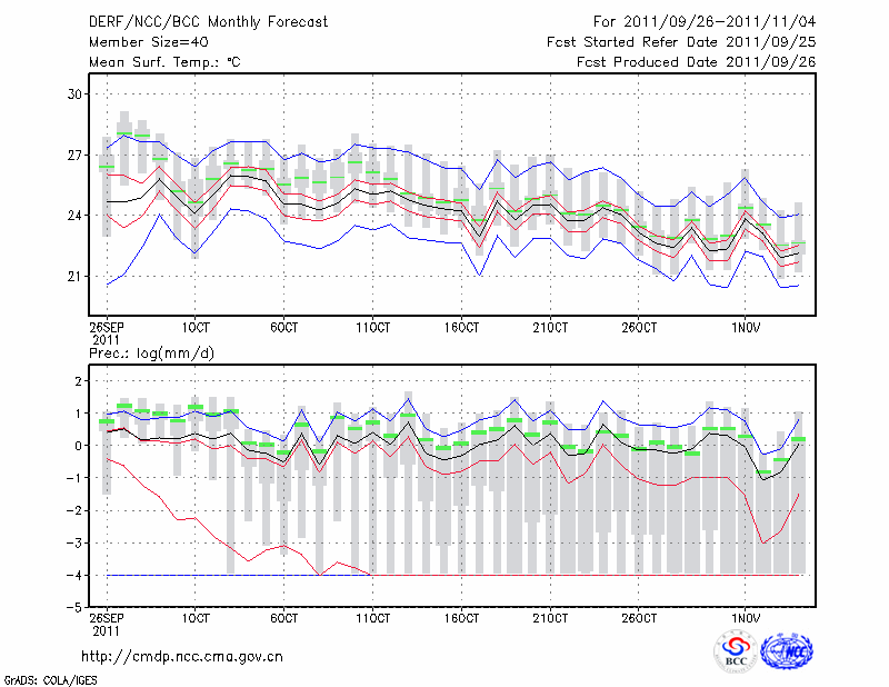 南 宁 (LAT:22.82 LON:108.35) 2011-09-26        预测