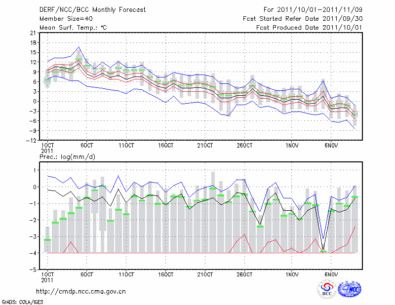 齐齐哈尔 (LAT:47.38 LON:123.92) 2011-10-01        预测