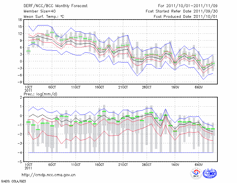 鸡 西 (LAT:45.28 LON:130.95) 2011-10-01        预测