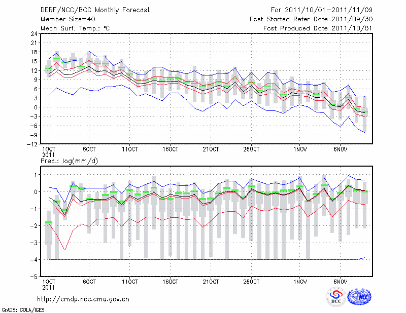 阿 勒 泰 (LAT:47.73 LON:88.08) 2011-10-01        预测