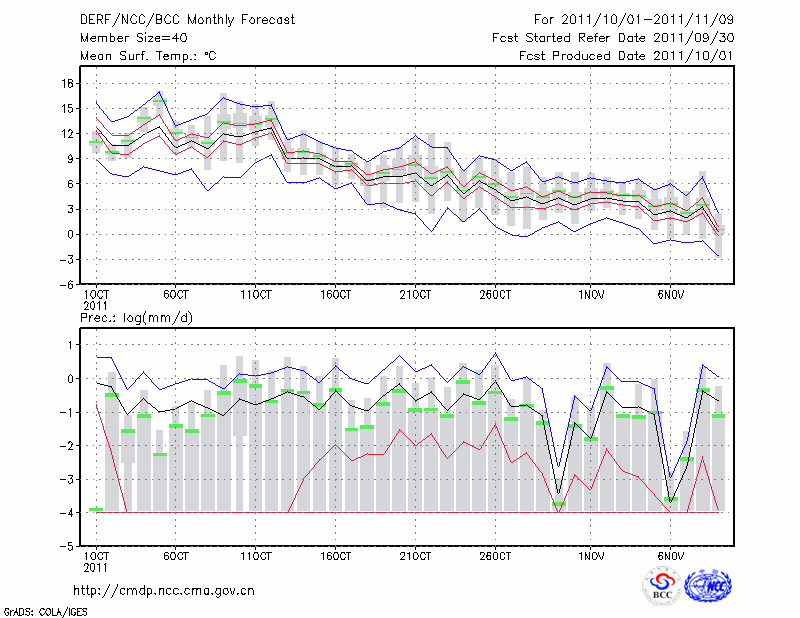 包 头 (LAT:40.66 LON:109.85) 2011-10-01        预测