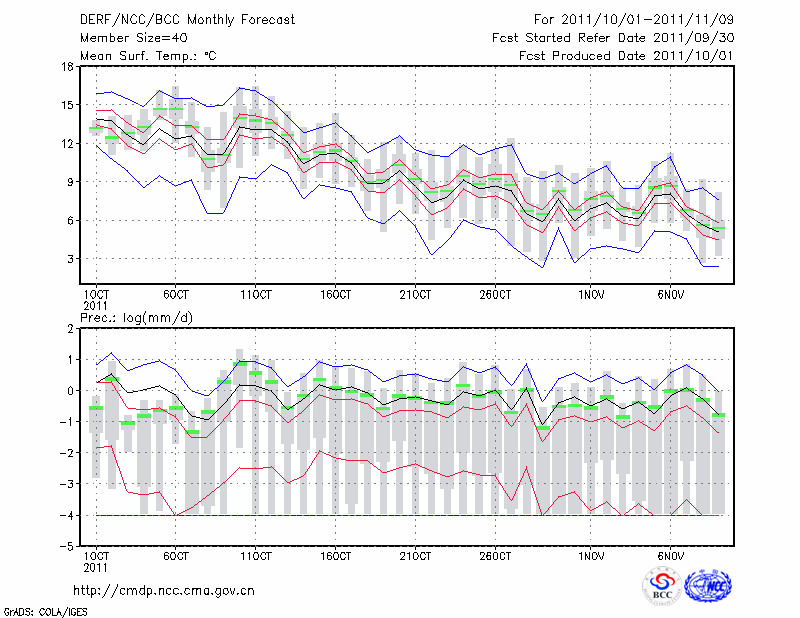 延 安 (LAT:36.60 LON:109.50) 2011-10-01        预测