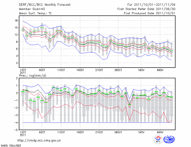 西 峰 镇 (LAT:35.73 LON:107.63) 2011-10-01        预测