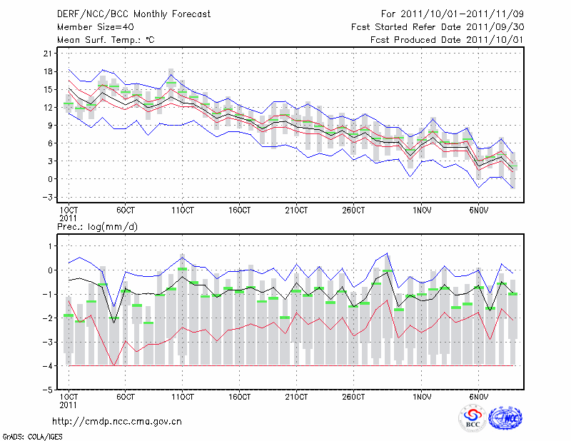 张 家 口 (LAT:40.78 LON:114.88) 2011-10-01        预测