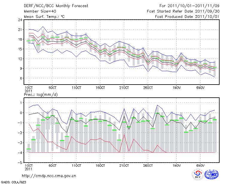 天 津 (LAT:39.10 LON:117.17) 2011-10-01        预测