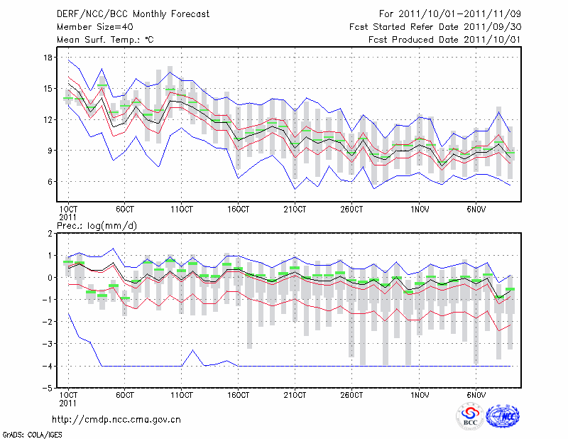 天 水 (LAT:34.58 LON:105.75) 2011-10-01        预测