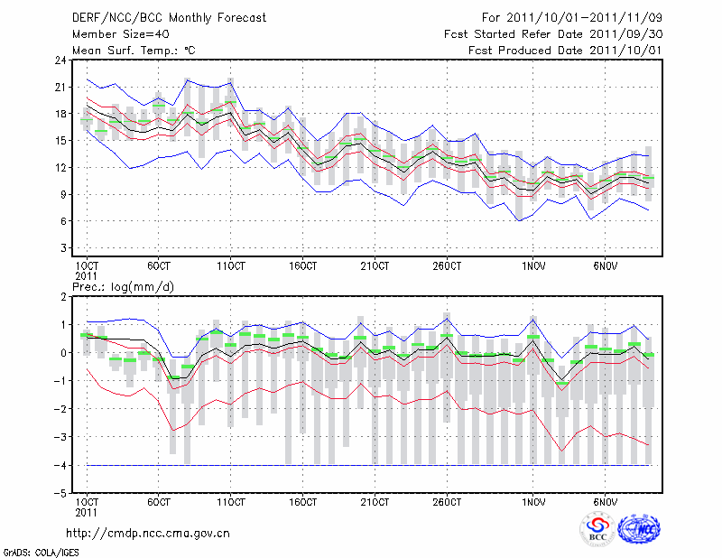 西 安 (LAT:34.30 LON:108.93) 2011-10-01        预测